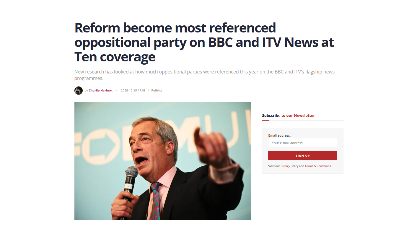 Reform become most referenced oppositional party on BBC and ITV News at Ten coverage